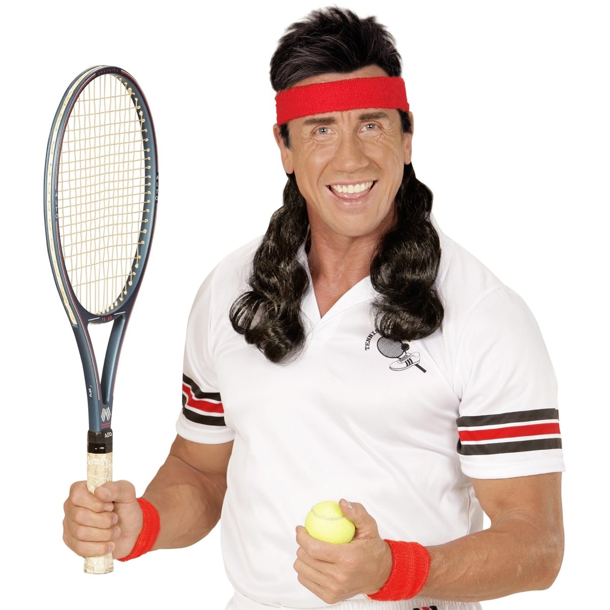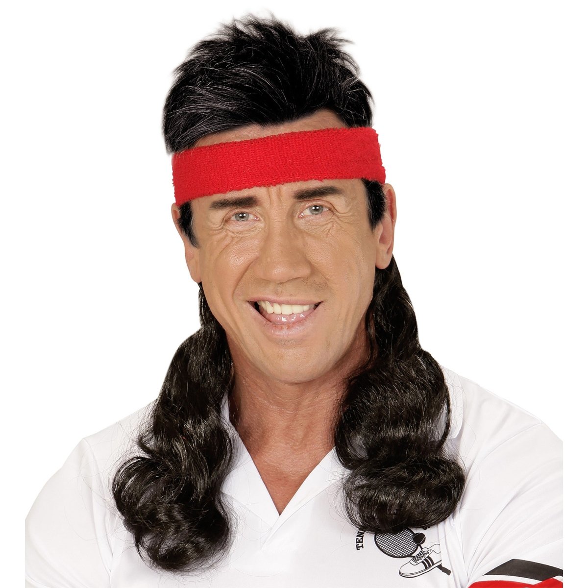 Punaiset hikinauhat peruukilla
