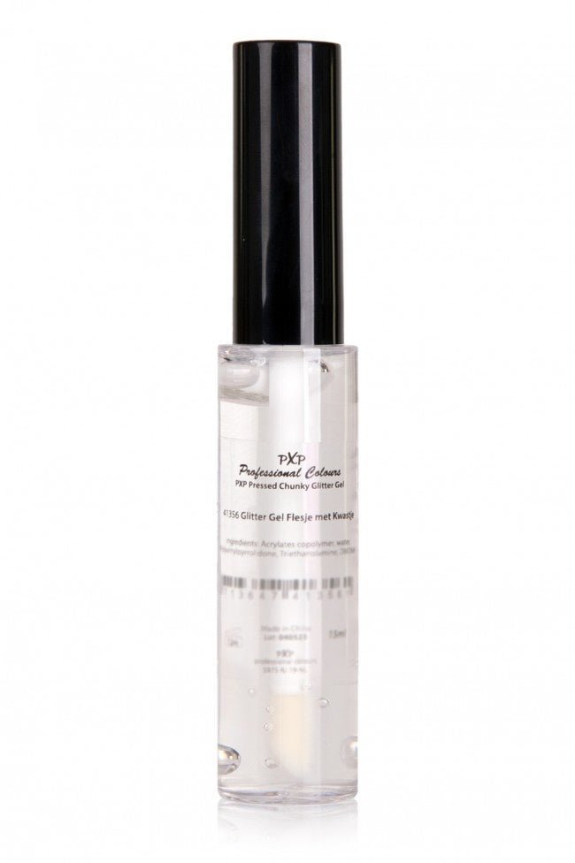 PXP Glitter Fix Gel on läpinäkyvästi kuivuva iholiima, joka sopii erinomaisesti glitterin kiinnittämiseen iholle. Pullon korkissa on kätevä sivellin, jolla geeli on helppo levittää halutulle alueelle.
