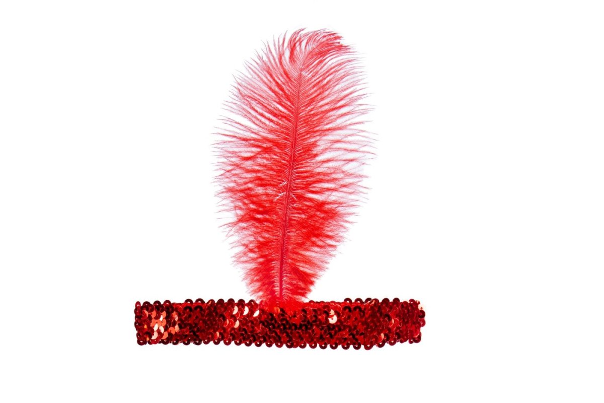 Punainen otsapanta Charleston höyhenellä