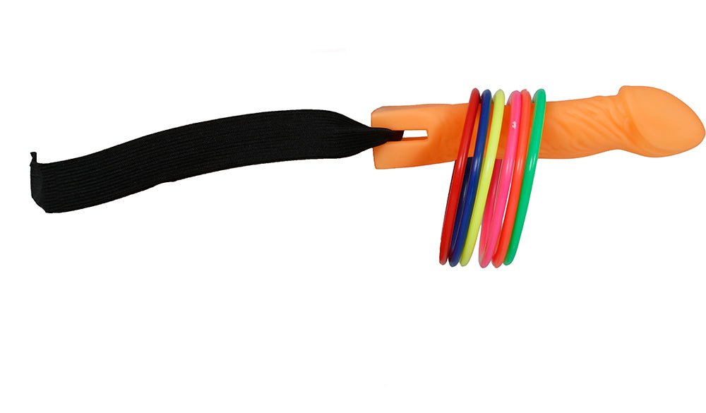 Tämä hauska peniksen muotoinen sormuksenheitto on hauska lisävaruste polttareihin, syntymäpäiville tai muihin juhlatilaisuuksiin. Valmistettu lateksista ja PVC:stä kestävyyden ja helppokäyttöisyyden vuoksi.