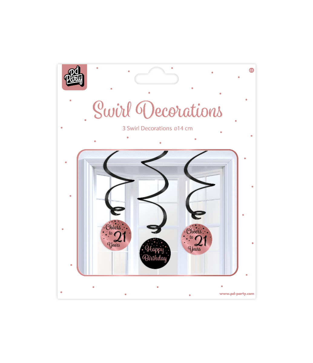 Ripustettu koriste 21 vuotta Hyvää syntymäpäivää musta vaaleanpunainen 17cm 3kpl