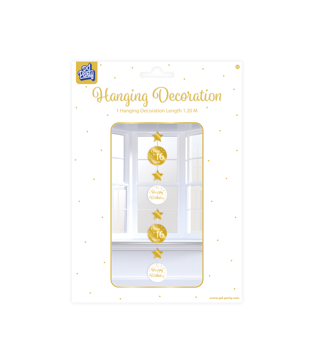 Ripustettava koriste 16 vuotta Kulta Valkoinen 20.5cm