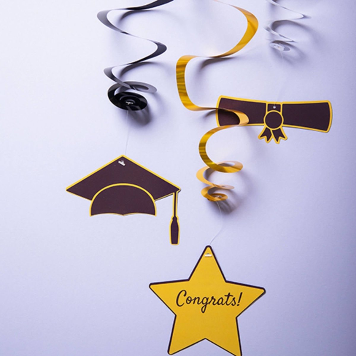 Ripustettava koriste Academic Elegance - 3 kpl. Sisältö: 3 kpl ripustettavaa koristetta. Väri: Monivärinen. Käytetään esimerkiksi seuraavissa juhlissa/juhlatilaisuuksissa: Valmistujaiset. Riipukset on painettu molemmin puolin. Tuote on valmistettu paperista.