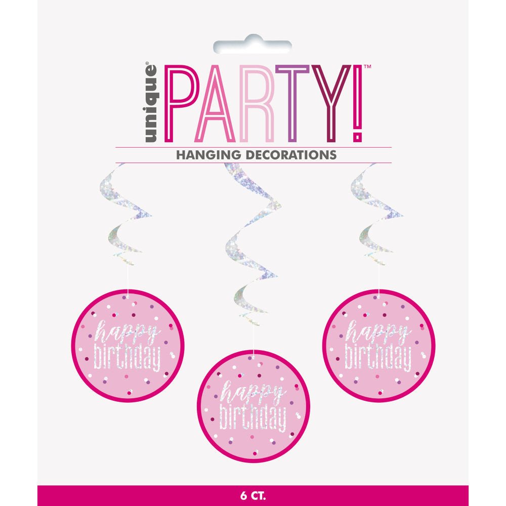 Ripustettava koristelu Hyvää syntymäpäivää vaaleanpunainen 81cm 6kpl