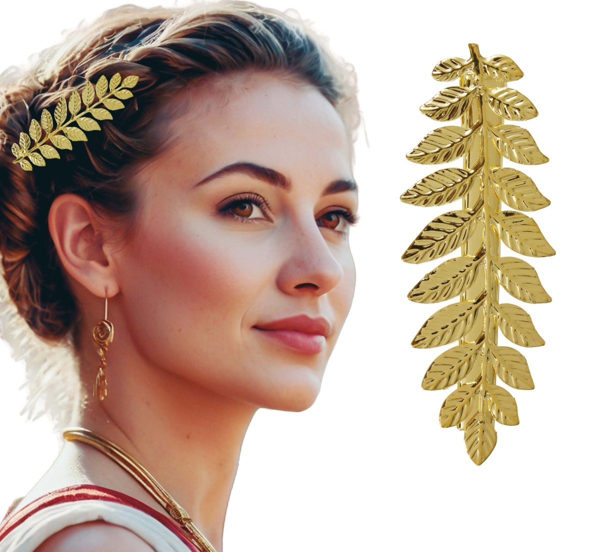 Anna kampauksellesi elegantti ja ajaton kosketus tällä kultaisella laakerinlehtihiuspidikkeellä. Täydellinen juhliin, häihin, gaaloihin tai tyylikkääksi viimeistelyksi mihin tahansa asuun.