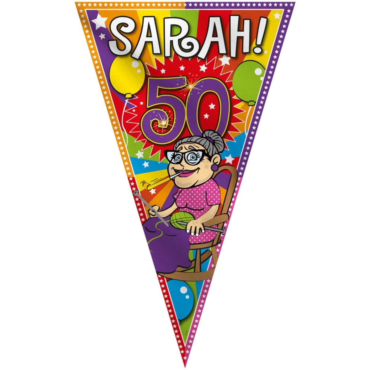 50 vuotta Sarah Party Mega Flag 100x150. Sisältö: 1 lippu. Väri: Monivärinen. Käytettäväksi esimerkiksi seuraavissa juhlissa/juhlatilaisuuksissa: Teemajuhlat, Syntymäpäivä. Tämän artikkelin mitat: 100x150cm. Tämä tuote on valmistettu polyesteristä.