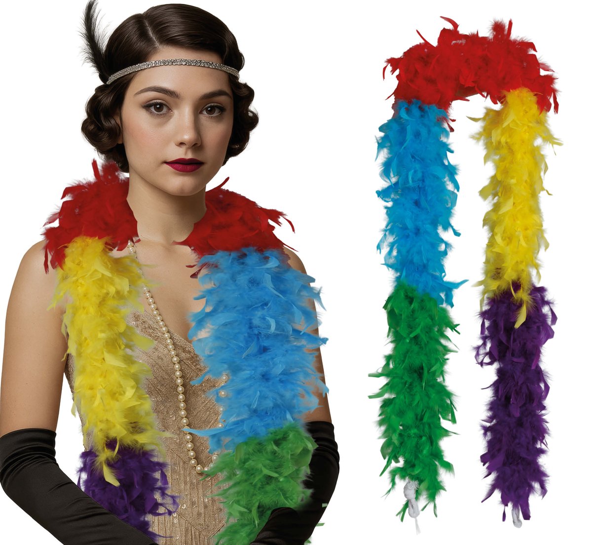 Tule huomatuksi tällä sateenkaarihöyhenillä varustetulla boa-puvulla. Kirkkaat, iloiset värit tekevät siitä täydellisen karnevaaleihin, pride-tapahtumiin, teemajuhliin tai lavaesiintymisiin. Boa on kevyt, pehmeä ja antaa mille tahansa asulle riemukkaan ja juhlavan ilmeen.