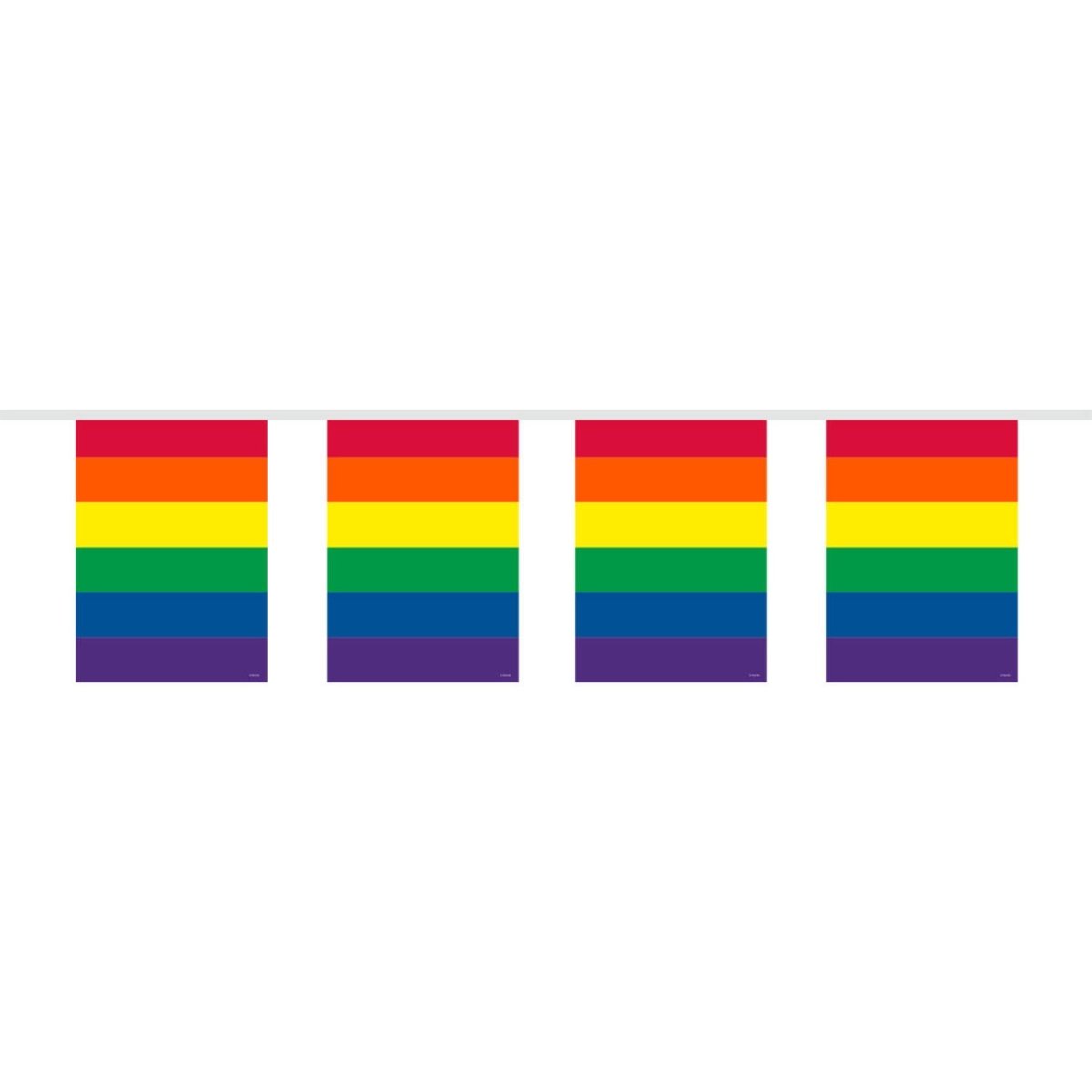 Sateenkaarilippusiima neliö - 10 metriä. Sisältö: 1 lippusiima. Väri: Monivärinen. Käytetään esimerkiksi seuraavissa juhlissa/juhlatilaisuuksissa: Gay Pride, lastenjuhlat. Tämä lippusiima on 10 metriä pitkä. Tuote on valmistettu muovista.