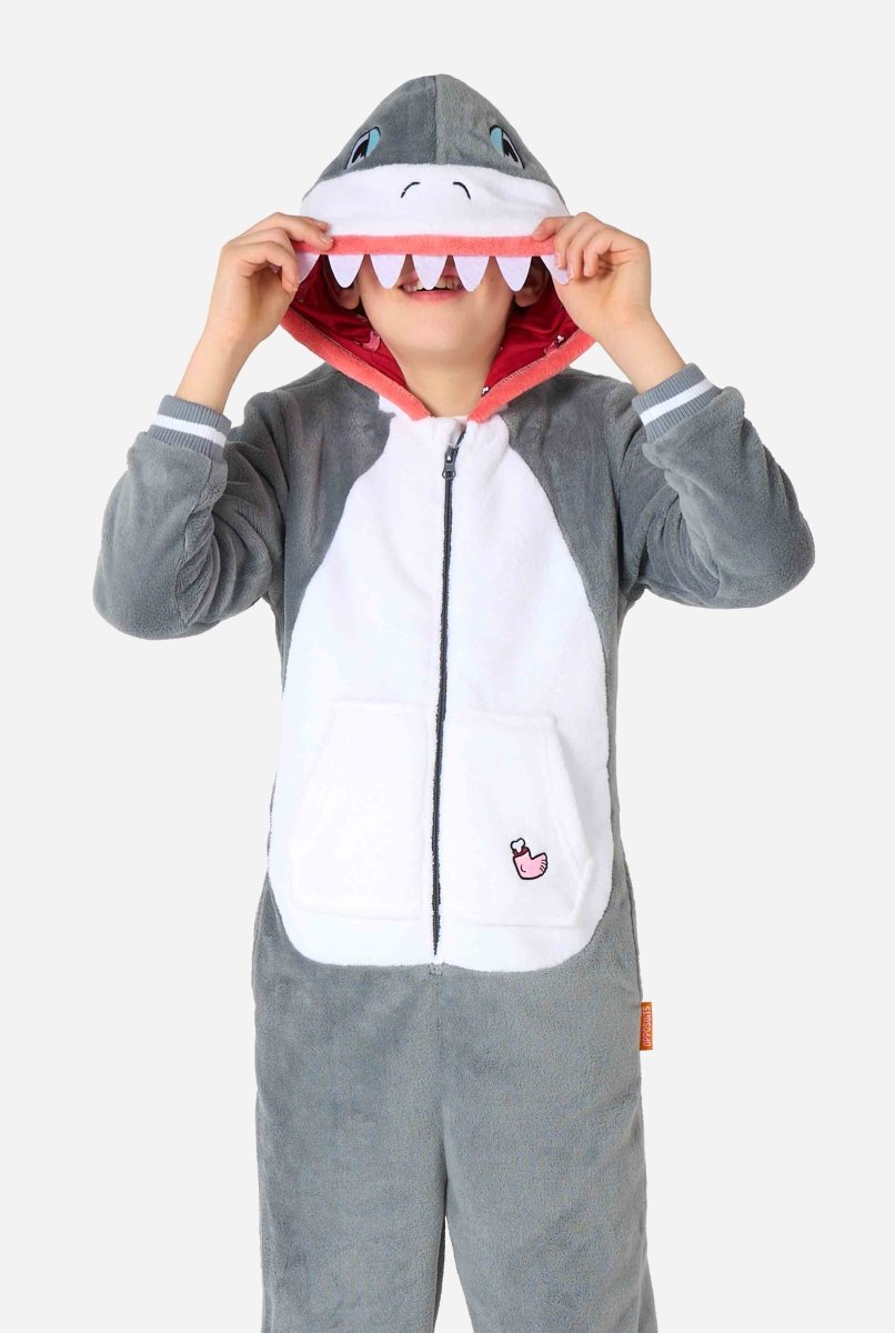 Sukella äärimmäisen mukavuuden syvyyksiin ja varmista, että kädet ja jalat pysyvät aina turvallisesti kyydissä. Lasten Sharks Onesie on vaarallisen kodikas, ja vaikka se tuo hauskuutta kaikkiin koulun juhliin, siihen voi uppoutua myös sohvalla. Ryhdy rentoutumisen ruumiillistumaksi tämän tyylikkään Shark Onesien kanssa!