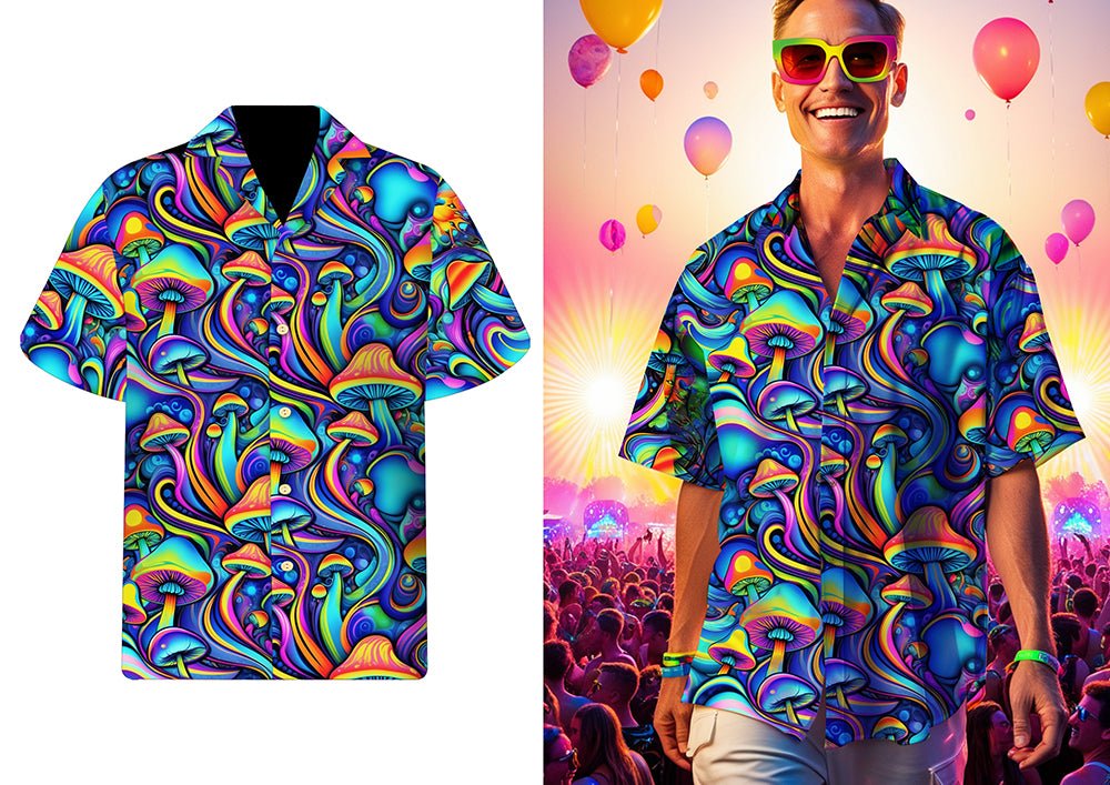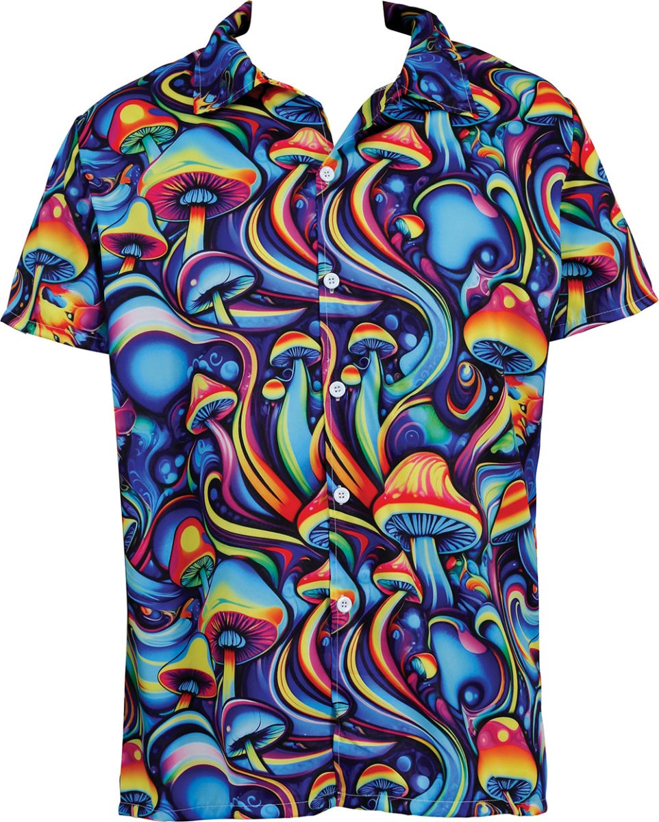 Erotu muista tämän värikkään Psychedelic Shrooms -puseron kanssa, joka on väriltään sininen, vihreä ja oranssi. Silmiinpistävät värit ja ainutlaatuinen kuvio antavat paidalle todella retrohenkisen ilmeen, joka sopii täydellisesti teemajuhliin, festivaaleille tai karnevaaleille. Valmistettu kevyestä ja joustavasta polyesteristä, joka takaa optimaalisen mukavuuden ja liikkumisen vapauden.