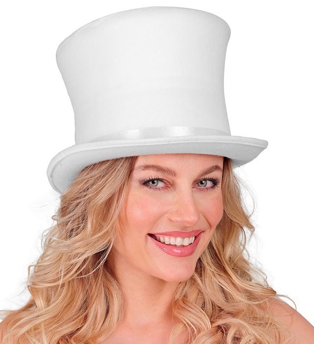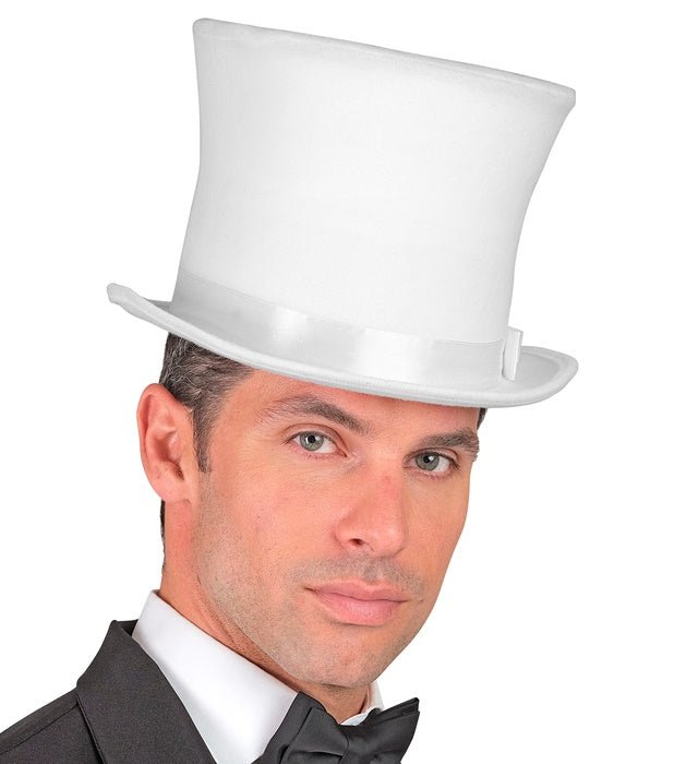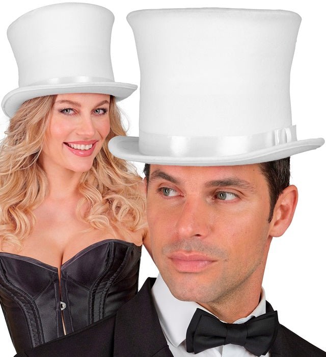 Täydennä asuasi tällä klassisella valkoisella silinterihatulla. Täydellinen teemajuhliin, karnevaaleihin, esityksiin, naamiaisiin tai tyylikkäisiin pukuihin.