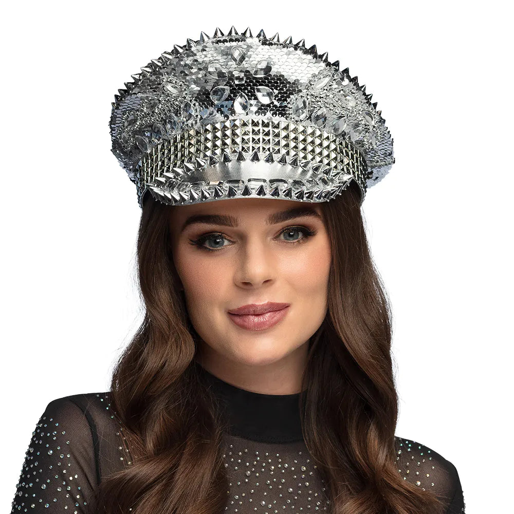 Siisti lisävaruste festivaaleille, juhliin tai karnevaaliasuun? Tässä siistissä hopeisessa Glam Festival -lippiksessä on ainutlaatuinen ilme näyttävien paljettien, nastojen ja kivien ansiosta. Todellinen katseenvangitsija, joka tekee asusta erottuvan. Sopii miehille ja naisille.