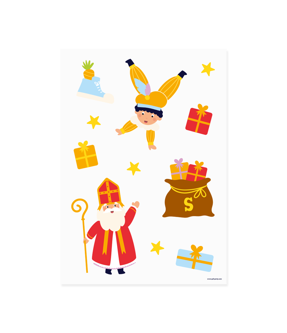 Ikkunatarrat - Sinterklaas ovat kivoja isoja ikkunatarroja, erityisesti Pyhimyksen ja Peten tervetuliaistarroiksi! Söpön muotoilunsa ansiosta ne sopivat myös erinomaisesti yhdistettäväksi muihin Sinterklaas-tuotteisiin, kuten pöydän koristeluun, kenkämattoon ja juhlakoristeisiin, kuten lippusiimoihin ja ilmapalloihin.