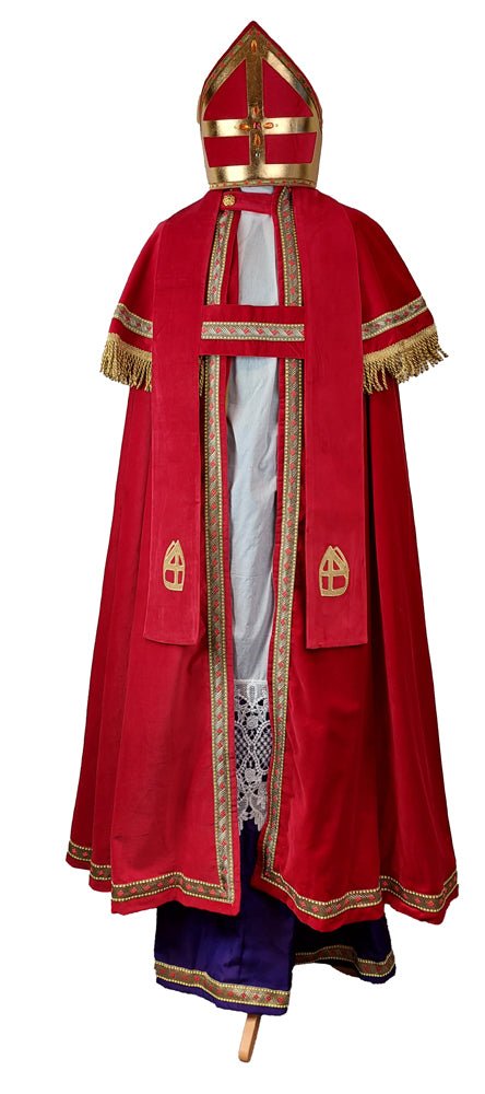 Uppoudu täysin Sinterklaas-juhlien taikaan tällä kauniilla Sinterklaas-puvulla, joka on valmistettu sametista. Runsas punainen väri ja kultaiset yksityiskohdat luovat autenttisen ja juhlavan ilmeen. Puku koostuu kolmesta osasta: viitasta, aluspaidasta ja stolesta - täydellinen täydelliseen pyhimysilmeeseen.
