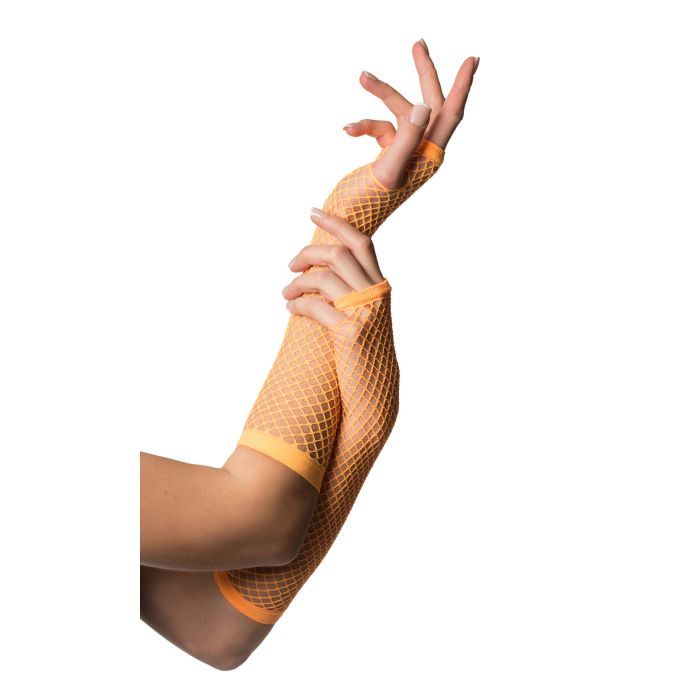 Sormettomat käsineet pitkät Fishnet Neon oranssi