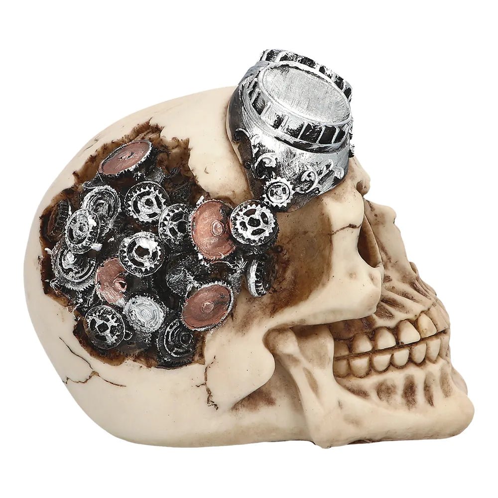 Pelottava koriste pelottaviin Halloween-juhliin tai synkkä koriste teolliseen steampunk-teemajuhlaan? Tämä siisti steampunk-kallo hammaspyörillä sopii molempiin teemoihin. Kallo on valmistettu tukevasta materiaalista, ja se sopii täydellisesti koristeeksi kotiin tai pöydälle.