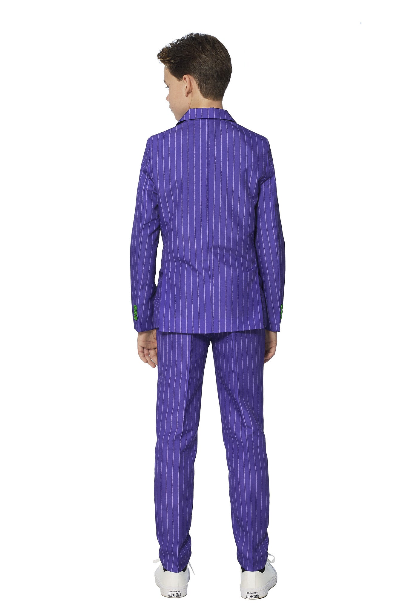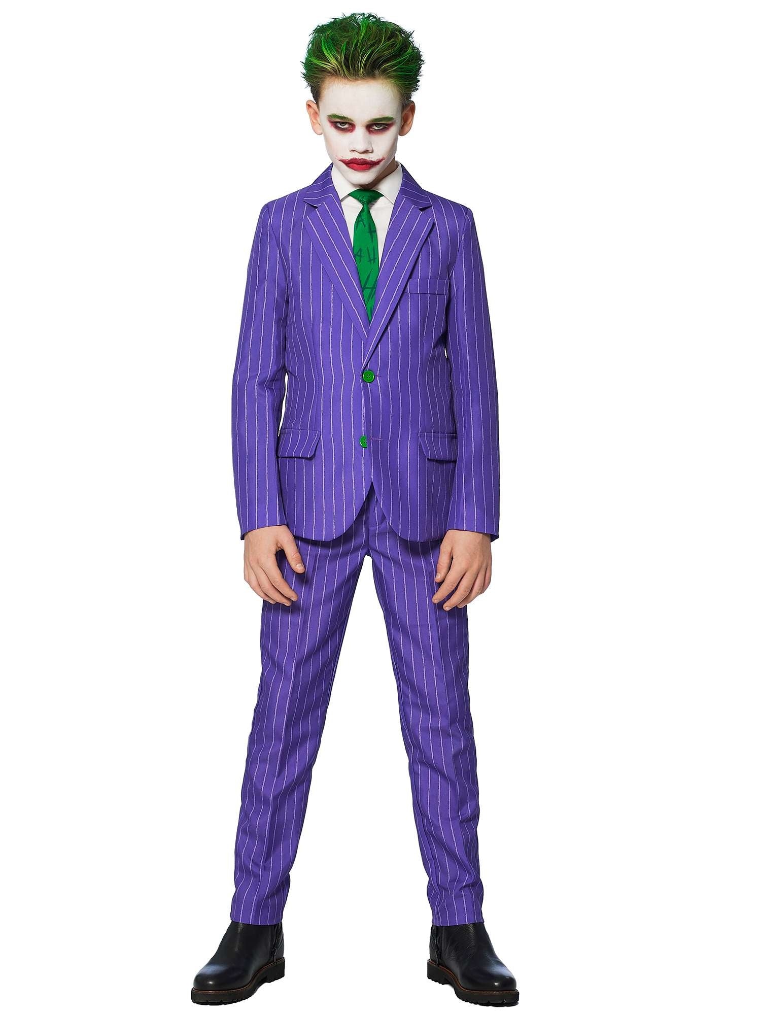 Tunsipa pikkupoikasi Jokerin™ sitten elokuvasta, sarjakuvasta tai videopelistä, yksi asia on varma: saat pikkupoikasi nauramaan kuin roisto tällä virallisella The Joker™ -puvulla. Se sopii moneen tilaisuuteen, kuten naamiaisiin ja Halloweeniin. Asu sisältää takin, housut ja turvallisen klipsillä kiinnitettävän solmion. Housuissa on säädettävä vyötärönauha, joka takaa mukavan ja tyylikkään istuvuuden.