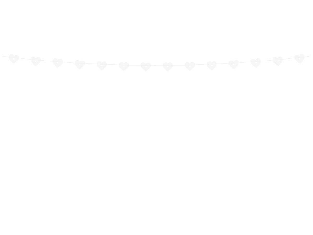 Sisältö: Ommeltu seppele Sydämiä paperista värissä valkoinen, pituus n. 1.8 m, korkeus n. 8 cm.