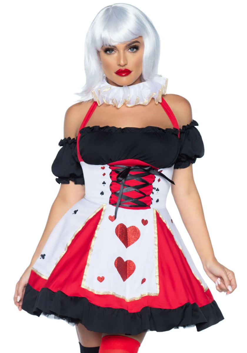 Sekoita kortit ja astu Ihmemaahan Leg Avenuen 2-osaisen Pretty Playing Card Costume -asun kanssa! Tähän seksikkääseen ihmemaa-asuun kuuluu pelikorttimallinen mekko, jossa on korsettivyötärö ja leikkisä röyhelökaulus. Yhdistele asusteiden kanssa luodaksesi oman ainutlaatuisen lookin! 🃏✨
