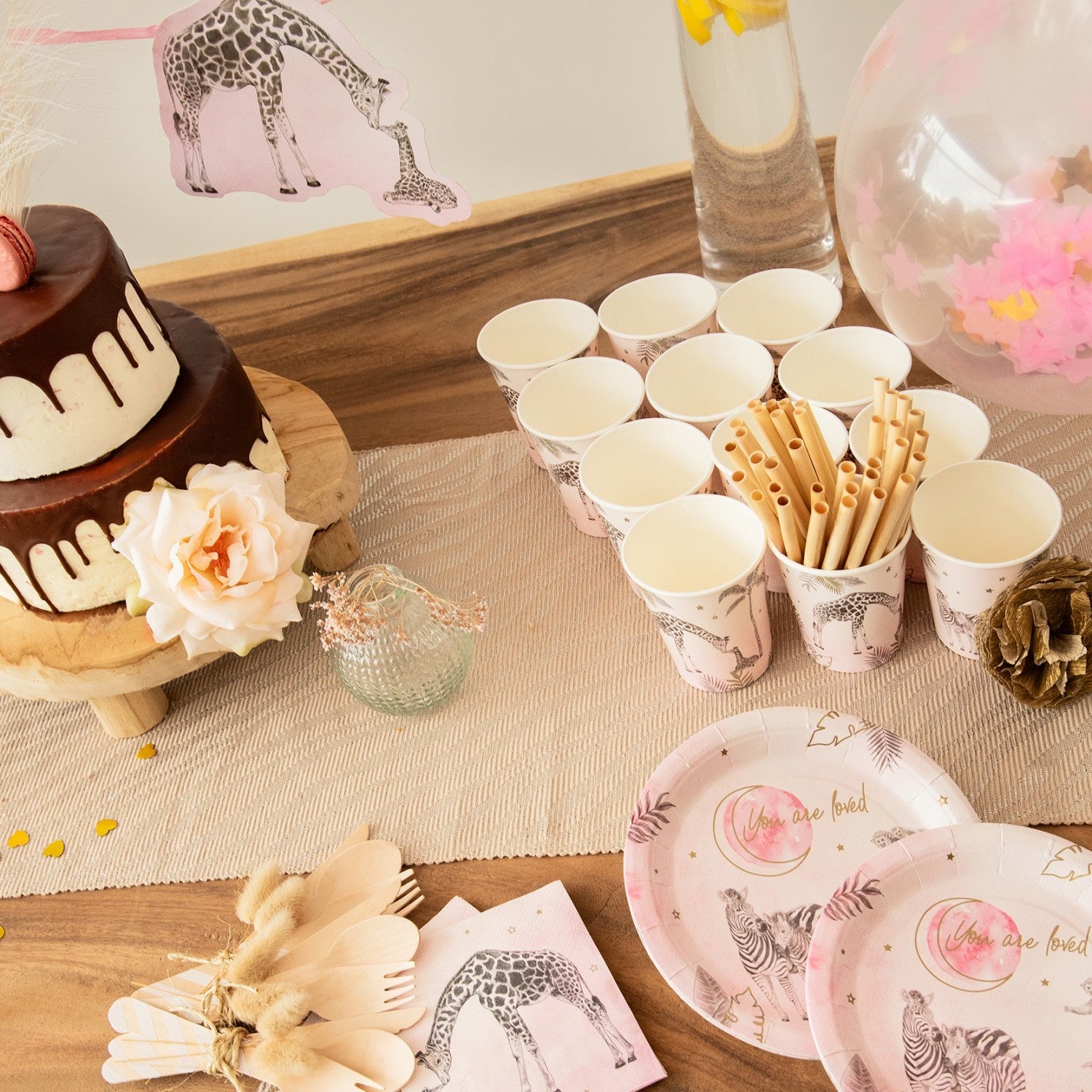 Syntymälautaset Vaaleanpunainen Safari 18cm 8kpl