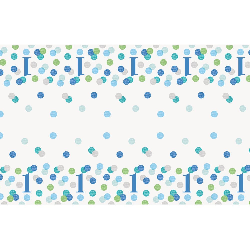 Syntymäpäivä pöytäliina 1 vuosi Siniset pisteet 2.13m