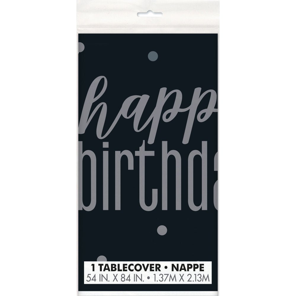 Syntymäpäivä pöytäliina Hyvää syntymäpäivää musta 2.13m