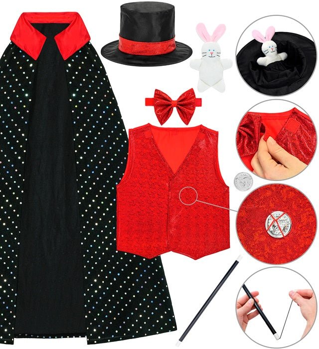 Sisältää lisävarusteet: Hattu piilotetulla tilalla, taikasauva, kolikko ja kani.
