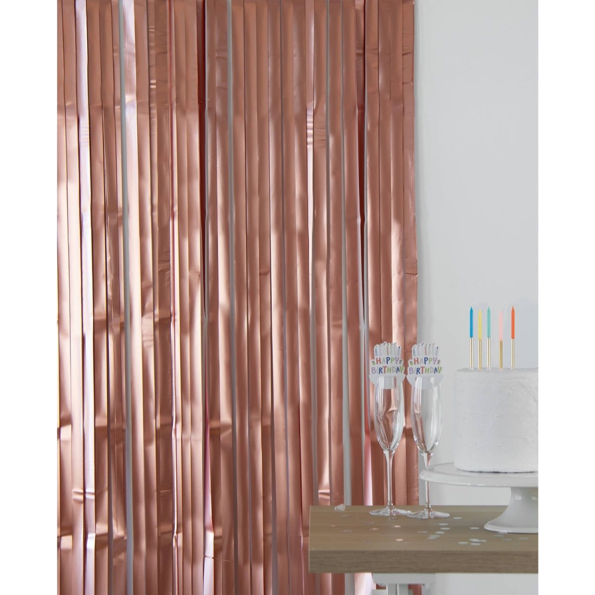 Pehmeä kimallus. Juhlaverho - Matt Rose Gold - 1 x 2 m. Sisältö: 1 juhlaverho. Käytetään esimerkiksi seuraavissa juhlissa/juhlatilaisuuksissa: Syntymäpäivä, teemajuhlat. Kaunis juhlaverho, jossa on 2,5 cm leveät ruusunväriset nauhat. Kiva oviverhona, mutta sopii hyvin myös taustaksi erikoiskuville. Kätevän liimareunuksen ansiosta tämä juhlaverho on helppo ripustaa. Tämä tuote on valmistettu foliosta.