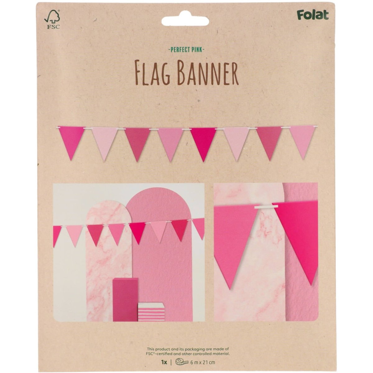 Kaunis vaaleanpunainen on myös juhlava! Lippusiima - Perfect Pink - 6 metriä. Sisältö: 1 lippusiima. Käytetään esimerkiksi seuraavissa juhlissa/juhlatilaisuuksissa: Syntymäpäivä, Teemajuhlat, Synttärit. Lippusiima, jossa on kauniita vaaleanpunaisia lippuja neljässä eri vaaleanpunaisen sävyssä. Yhdessä lippusiimassa on 16 lippua. Lippujen koko on 17 x 21 cm. Linja on valmistettu valkoisesta polysterinauhasta. Liput voidaan liu'uttaa yksitellen nauhan päälle. Tämä tuote on valmistettu FSC-paperista.