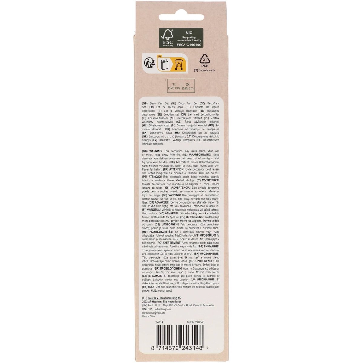 Juhli vaaleanpunaisella! Deco Fan Set - Perfect Pink - 3 kpl. Sisältö: 3 koristeviuhkaa. Käytettäväksi esimerkiksi seuraavissa juhlissa/juhlatilaisuuksissa: Syntymäpäivä, Teemajuhlat, Syntynyt tyttö. Lumoavat vaaleanpunaiset koristeviuhkat, joissa on erilaisia kuvioita neljässä vaaleanpunaisen sävyssä. Mukana on kaksi suurta, joiden halkaisija on 35 cm: yksi raidallinen 2 vaaleanpunaisen sävyssä ja yksi 3 vaaleanpunaisen sävyssä. Lisäksi pienempi koko, jonka halkaisija on 25 cm: 2 vaaleanpunaisen sävyä. Tuulettimet on pakattu taitettuina, ja ne voidaan helposti avata käyttöä varten. Jokaiseen tuulettimeen on kiinnitetty puuvillanaru ripustamista varten. Mukana paperiliittimiä, jotta viuhkat pysyvät pyöreinä. Painettu molemmin puolin. Tämä tuote on valmistettu FSC-paperista.