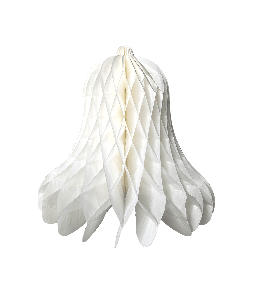 Joulukello on valmistettu paperista, kevyt ja helppo ripustaa. Neutraalin valkoisen värinsä ansiosta voit vaivattomasti yhdistää sen muihin joulukoristeisiin.