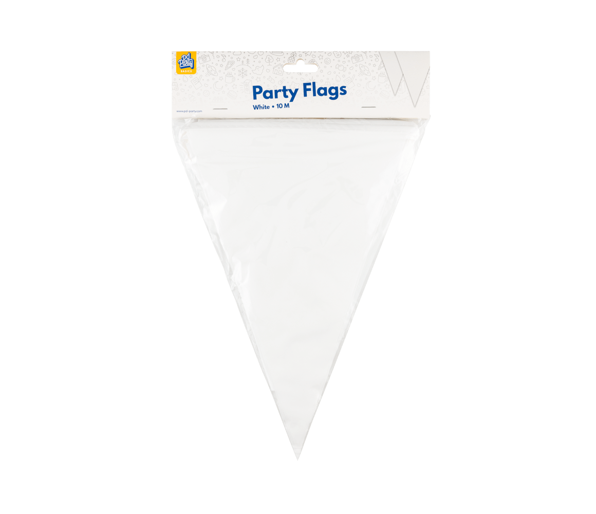 Paper Dreamsin Basic-malliston juhlalippujen PE - valkoinen avulla saat laadukkaan valkoisen lippusiiman kilpailukykyiseen hintaan. Lippusiima on 10 metriä pitkä ja tilausyksikkö on 6. Liput on valmistettu polyeteenistä (PE) ja ne on helppo ripustaa.
