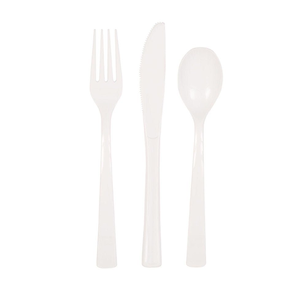 Pakkauksen sisältö: Valkoinen ruokailuväline muovinen 18 kpl