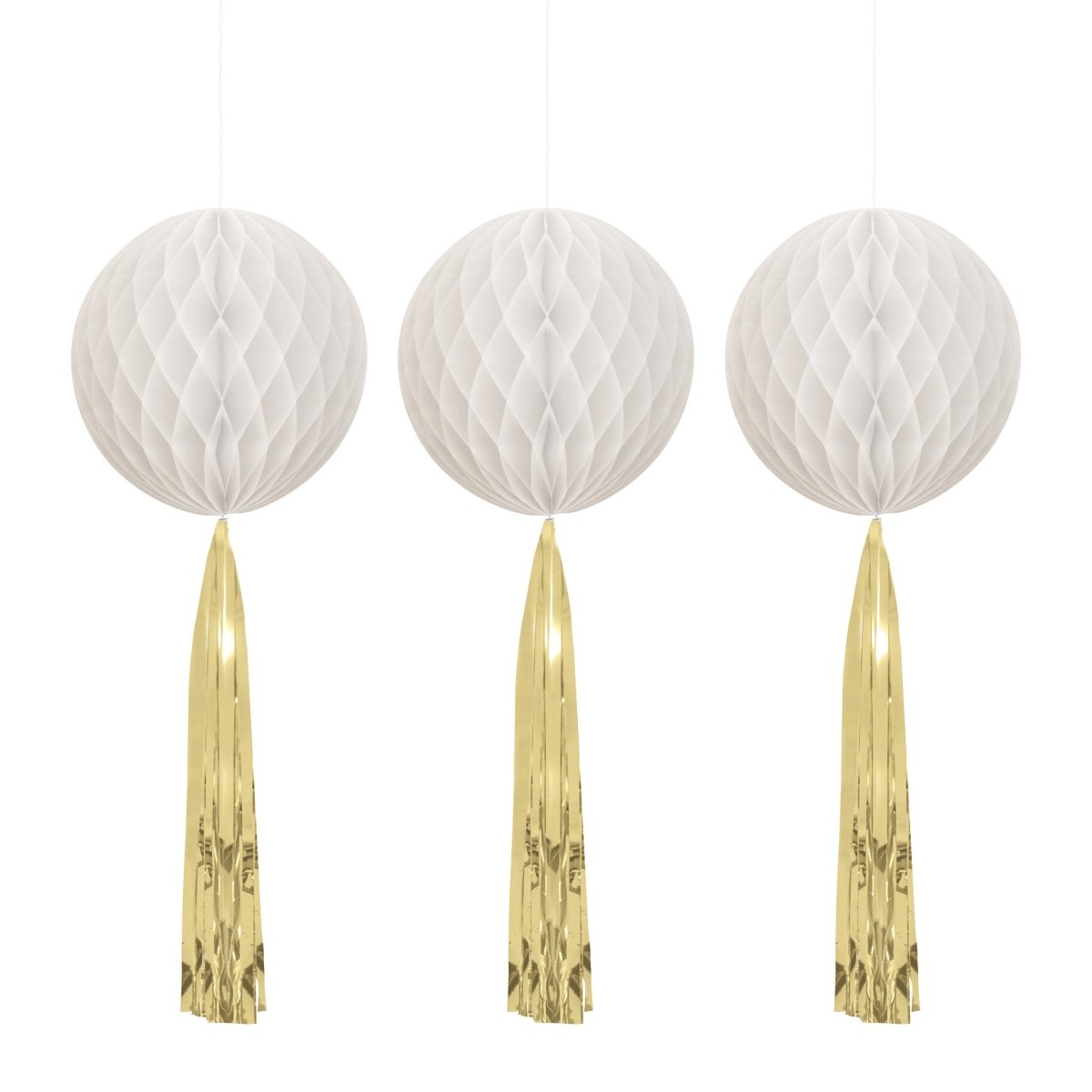 Valkoiset hunajakennot kultaisilla tupsuilla 3kpl