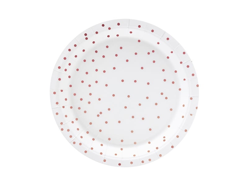 Valkoiset lautaset Rose Gold Dots 18cm 6kpl