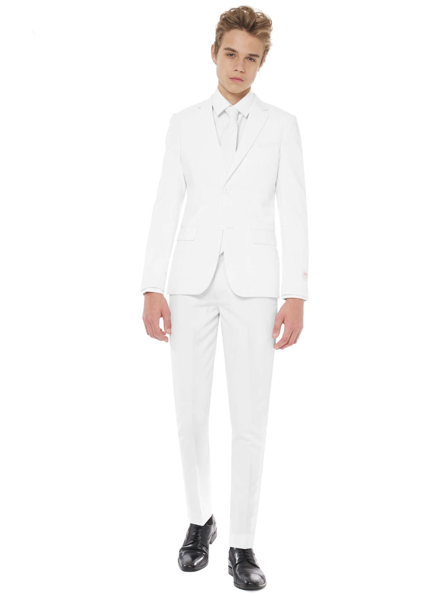 Uskallatko pukeutua lihasvalkoiseen päästä varpaisiin? Siistiä! Koska valkoinen poikien puku on ihanteellinen asu, jolla voit antaa muoti-ilmoituksen erityisessä tilaisuudessa. Äläkä ole huolissasi tahroista, sillä tämä puku on konepestävä. Joten voit pitää siinä rajattomasti hauskaa.