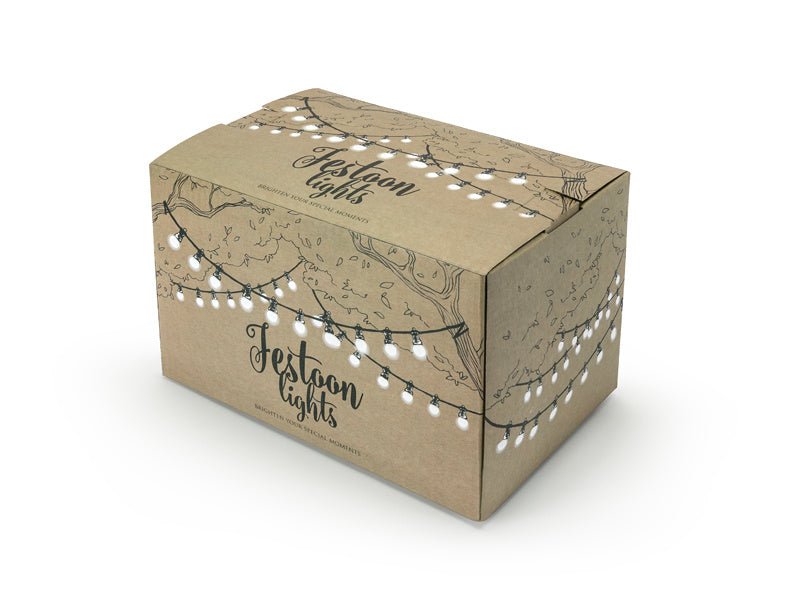 LED Festoon -valot, kirkas musta lanka, langan pituus valojen kanssa noin 5 metriä, ylimääräinen lanka noin 3 metriä, 10 pyöreää valoa, lämpimän valkoinen valon väri. Sopii sekä sisä- että ulkokäyttöön. Valoja ei voi liittää valosarjoihin. Ei sisällä UK-pistoketta.