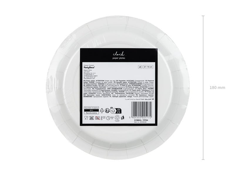 Paperilautaset Kello, musta väri, kultainen painatus, koko n. 18 cm.(1 pkt/6 kpl) Materiaali: foliolla päällystämätön ja maalaamaton paperi - 100%