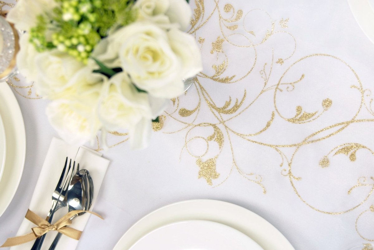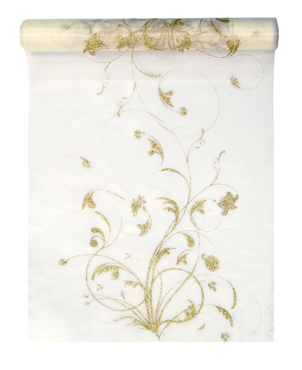 Vanilja Creme Organza kangas kultakukat 36cm 9m 9cm