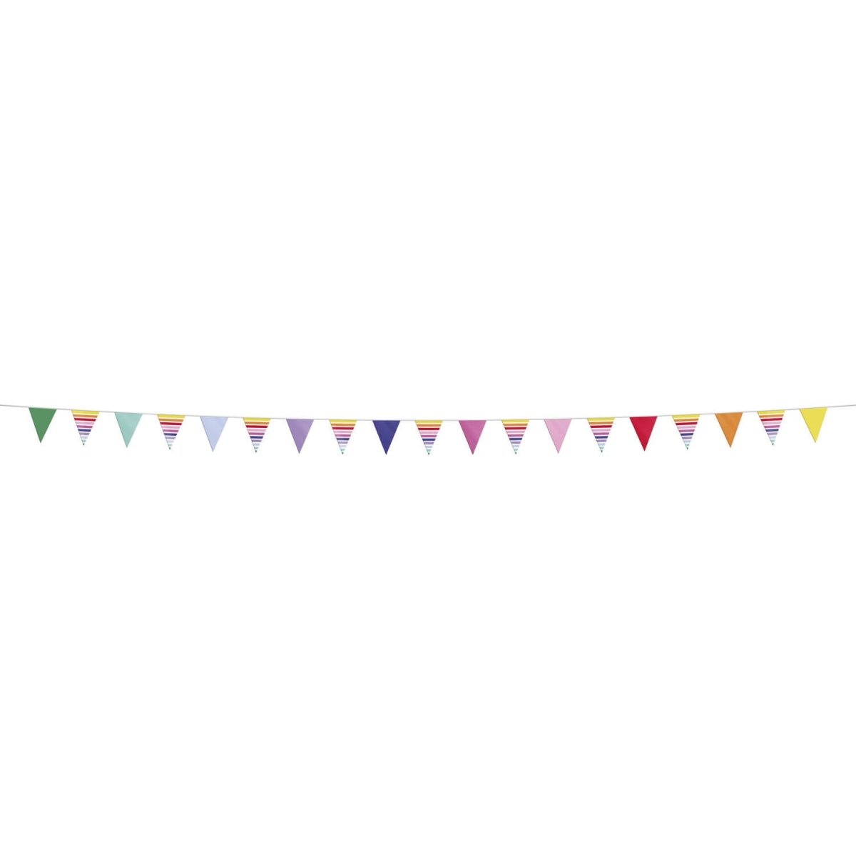 Kään puolue ei voi olla ilman. Lippusiima - Stripetastic - 10 m. Sisältö: 1 lippusiima. Käytetään esimerkiksi seuraavissa juhlissa/juhlatilaisuuksissa: Syntymäpäivä, teemajuhlat, festivaali. Värikäs lippusiima kätevällä säilytysjärjestelmällä. Vuorotellen värillisiä lippuja ja lippuja, joissa on värillisiä vaakasuoria raitoja. Yhden lipun koko on 21 x 30 cm. 10 metriä pitkässä valkoisessa nauhassa on 19 lippua. Lippujen välissä on 11 cm tilaa ja molemmissa päissä 2 metriä ripustamista varten. Viimeinen lippu (22 x 32 cm) toimii myös pussina, johon muut liput voidaan taittaa. Näin lippusarjan varastointi, säilyttäminen ja uudelleenkäyttö on erittäin helppoa. Tämä tuote on valmistettu muovista.