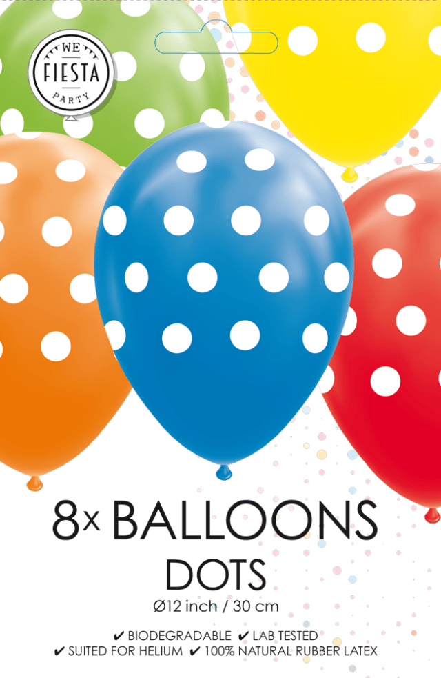 Värilliset ilmapallot Dots 30.5cm 8kpl