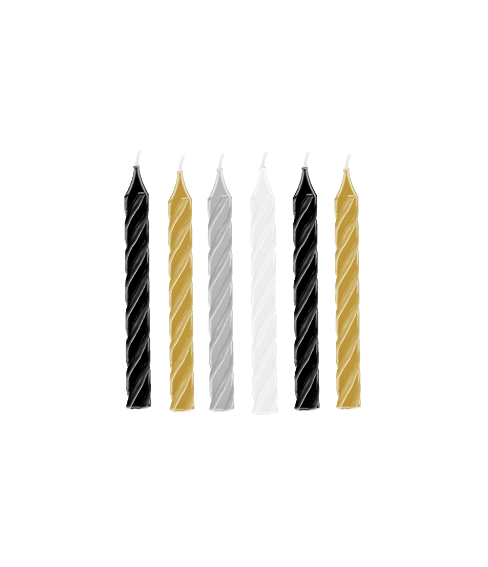 Värilliset kynttilät Mix Musta Kulta Hopea Valkoinen 12.5cm 6kpl 6kpl