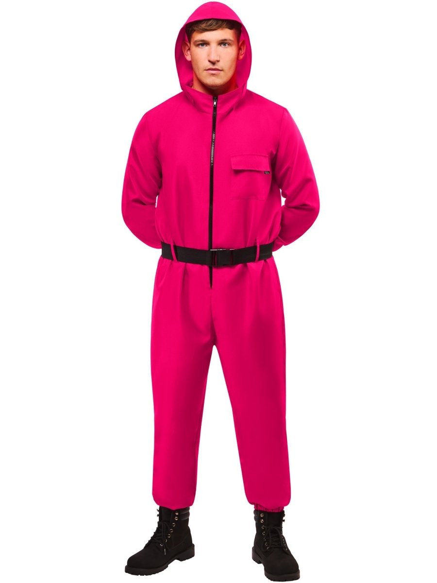 Kunnioita kaartin ikonista ilmettä tällä silmiinpistävän punaisella haalarilla, joka on saanut inspiraationsa Netflixin maailmanlaajuisesta hitistä Squid Game. Vaikuttavalla hupulla ja yhteensopivalla vyöllä varustettu puku muuttaa sinut välittömästi yhdeksi sarjan unohtumattomista lainvalvojista.