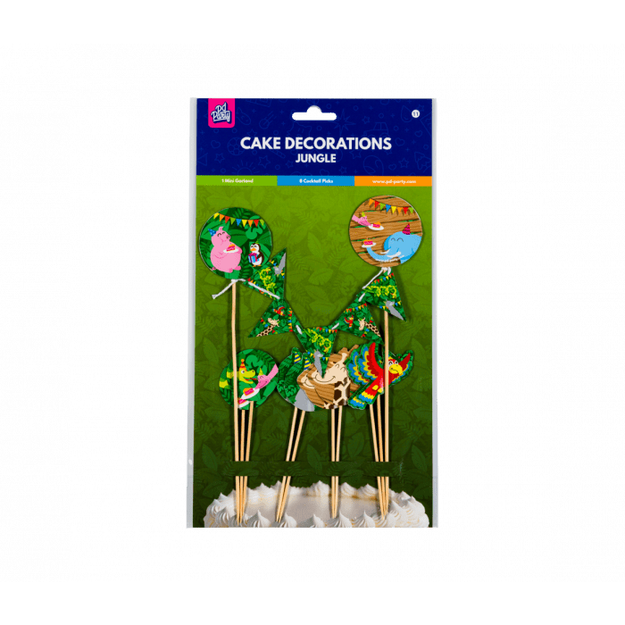 Tee mistä tahansa kakusta todellinen katseenvangitsija näillä kakkukoristeilla Jungle! Lapsen syntymäpäivänä tämä on täydellinen koriste kakussa. Hammastikut on helppo työntää kakkuun tai kakkuun ja saada aikaan huomiota herättävä vaikutus.