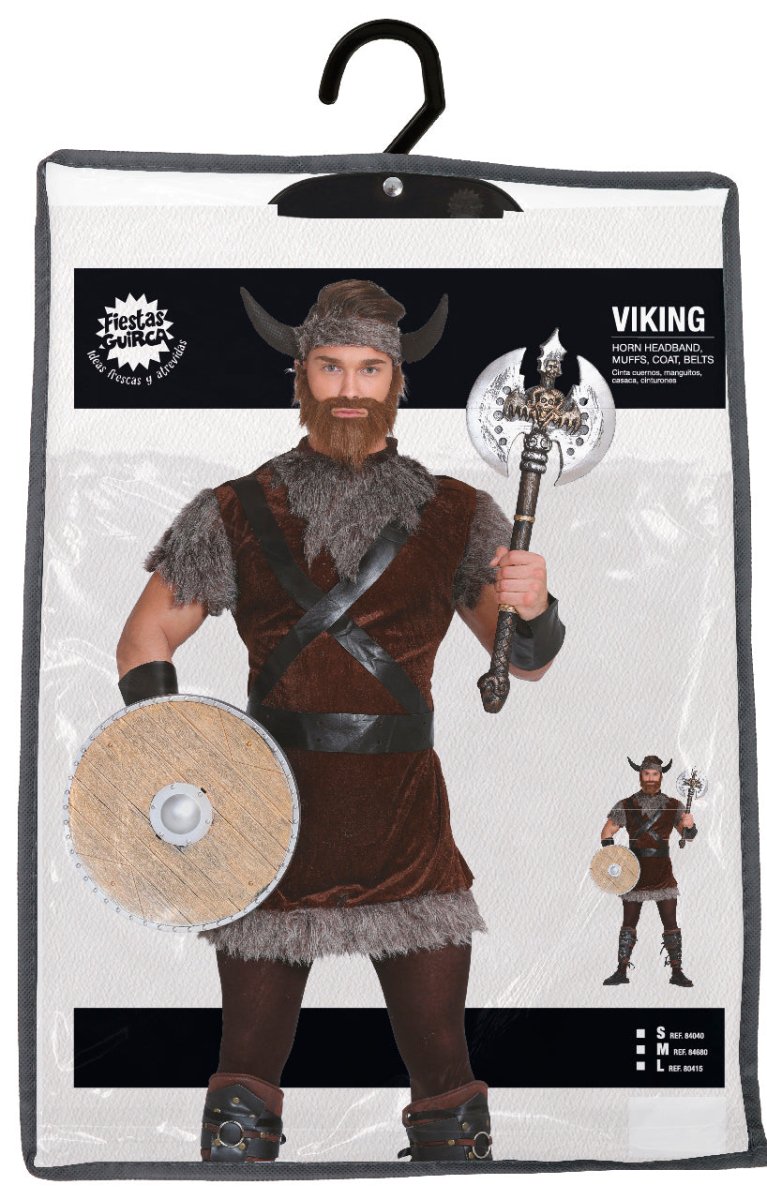 Sisältö: viikinkipuku, vyö, käsivarsinauhat ja pääpanta sarvilla