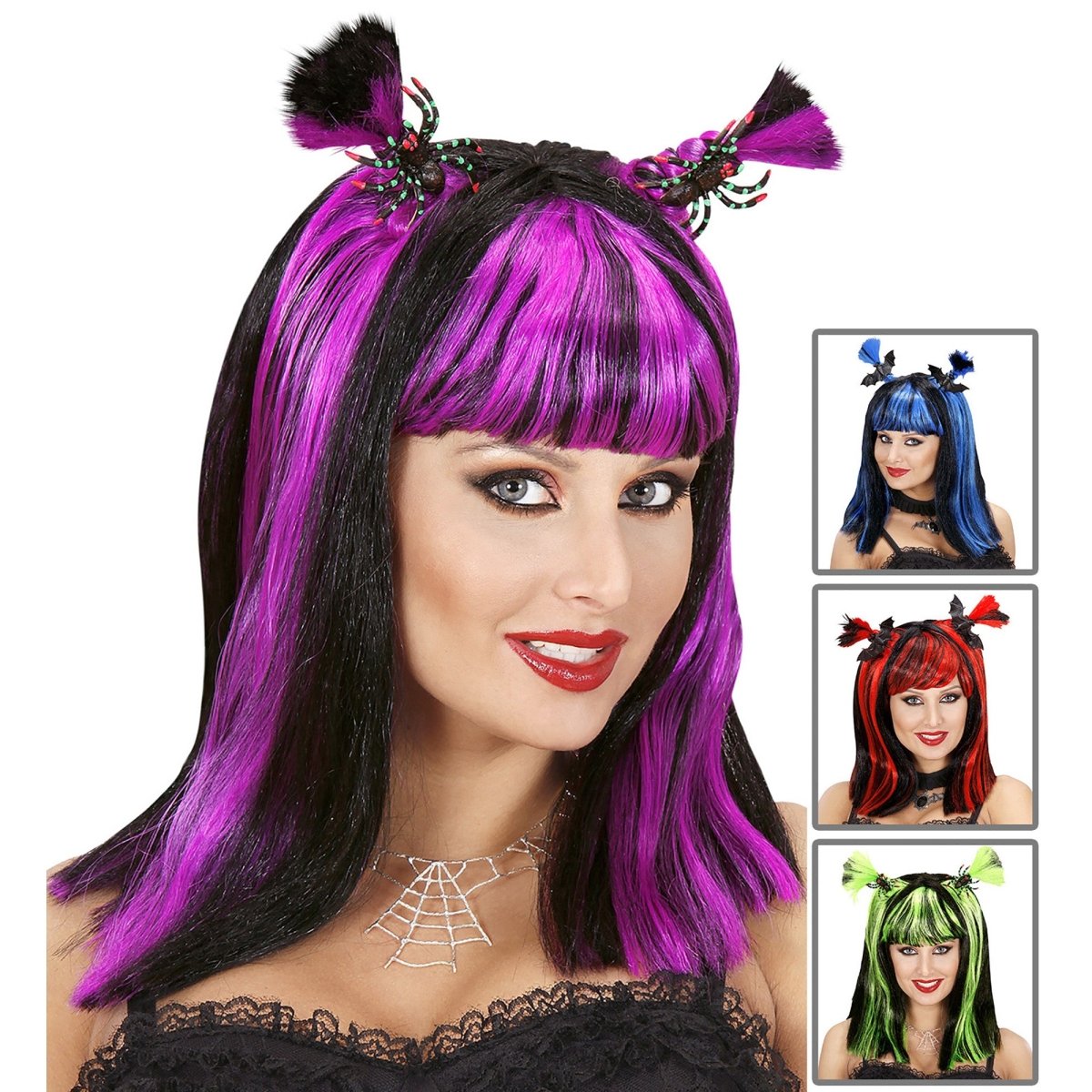 Violetti musta peruukki hämähäkkien kanssa