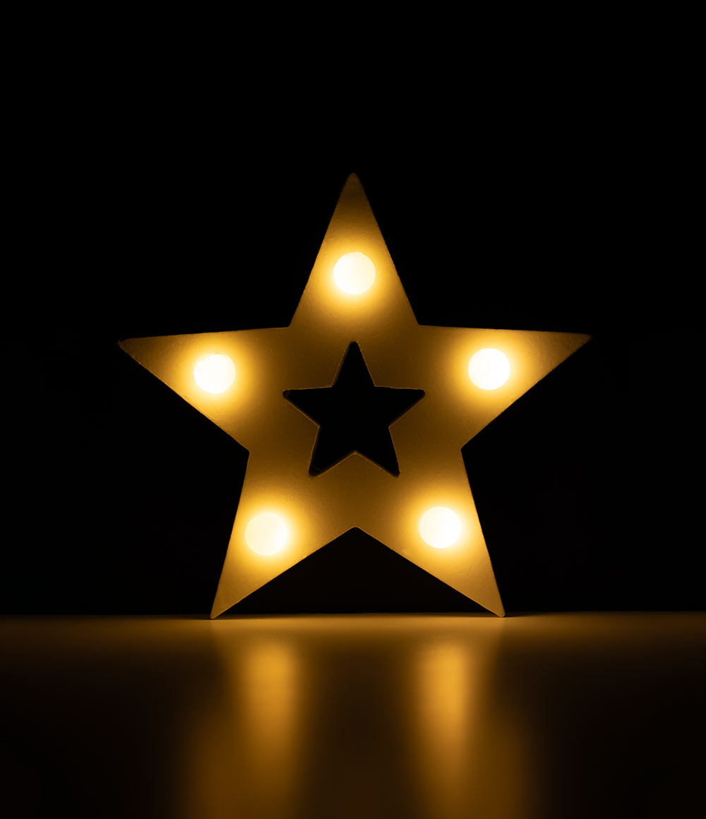 Valokirjainten avulla voit luoda omia sanoja ja lauseita tunnelmallisella tavalla. Mukana paristo.
